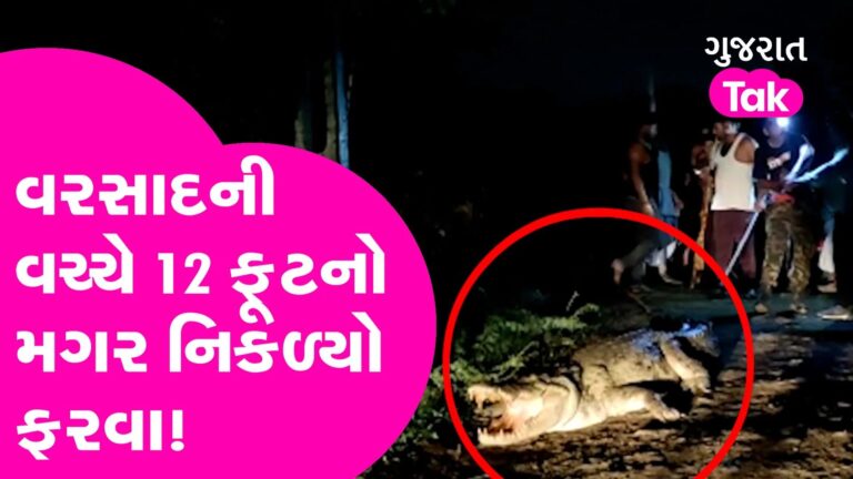 Vadodara માં વરસાદની વચ્ચે 12 ફૂટનો મગર નિકળ્યો ફરવા!